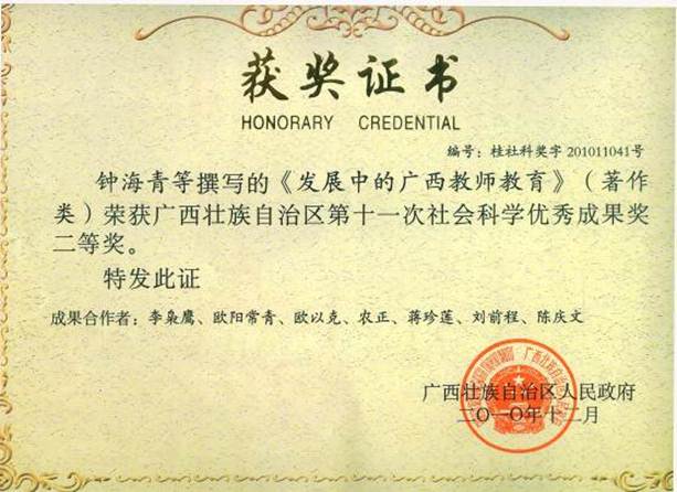 上一条:www.2222.net:广西高等教育自治区级教学成果一等奖 下一条:守望边疆教育:广西边境民族地区教育质量保障与特色发展研究:2012年广西壮族自治区第十二次社会科学优秀成果二等奖