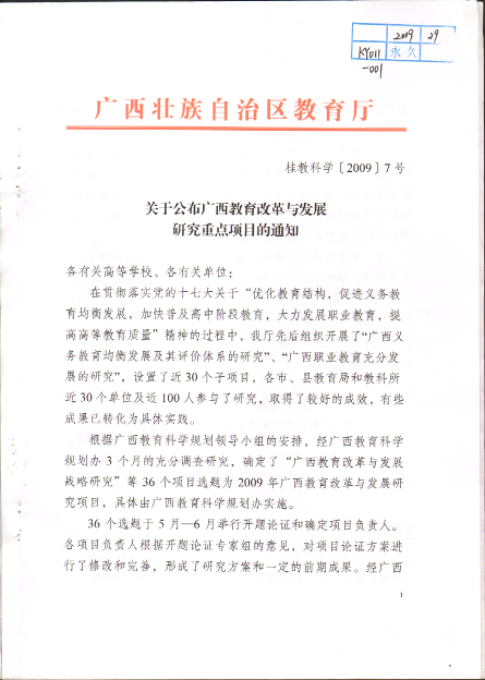 上一条:广西教师资格认定制度实施状况调查研究(编号:09GX07) 下一条:新课标对民族地区高中教师的适应性调查研究(编号:200911MS73)